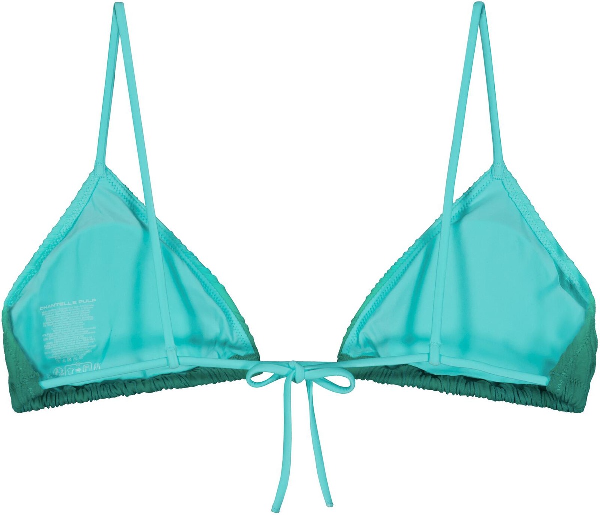 Tyylikäs kolmionmallinen bikinitoppi, joka yhdistää mukavuuden ja monipuolisuuden. Valmistettu joustavasta, teksturoidusta kankaasta, joka tuntuu miellyttävältä ihoa vasten. Irrotettavat kupit mahdollistavat yksilöllisen istuvuuden, ja kaarituettomuus takaa luonnollisen mukavuuden. Säädettävät ja monikäyttöiset olkaimet voidaan käyttää perinteisesti, ristissä tai niskan takaa. Solmittava selkäkiinnitys sekä vuorattu etu- ja takaosa viimeistelevät laadukkaan ja imartelevan ilmeen – täydellinen valinta aurinkoisille rannoille ja altaalle.