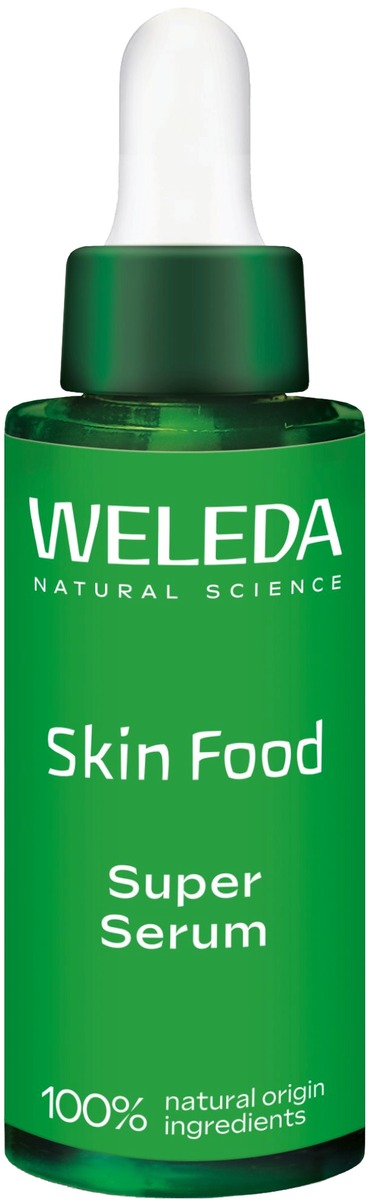 Skin Food -tuoteperheen kasvoseerumi antaa kuivalle ja väsyneelle iholle luonnollisen hehkun. Sisältää hyaluronihappoa, keramideja ja ainutlaatuista Skin Food -uutetta, joka sisältää 100 % luonnollisia kasviuutteita, kuten kehäkukkaa, kamomillaa, rosmariinia ja orvokkia. Skin Food -nimikkouutetta löytyy kaikista Skin Food -tuoteperheen tuotteista. Skin Food -kasvoseerumi kosteuttaa ihoa välittömästi, imeytyy nopeasti eikä jätä tahmeaa tunnetta. Seerumi vahvistaa myös ihon omaa mikrobiomia, on dermatologisesti testattu ja vegaaninen. 100 % luonnolliset ainesosat.