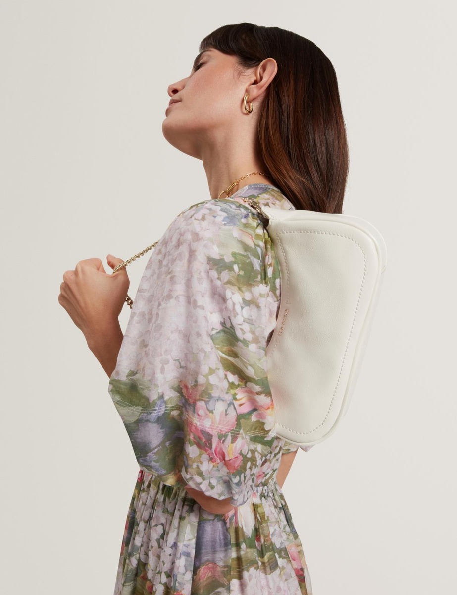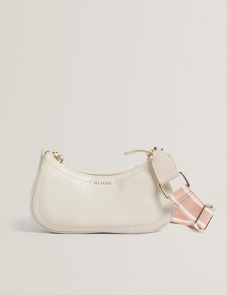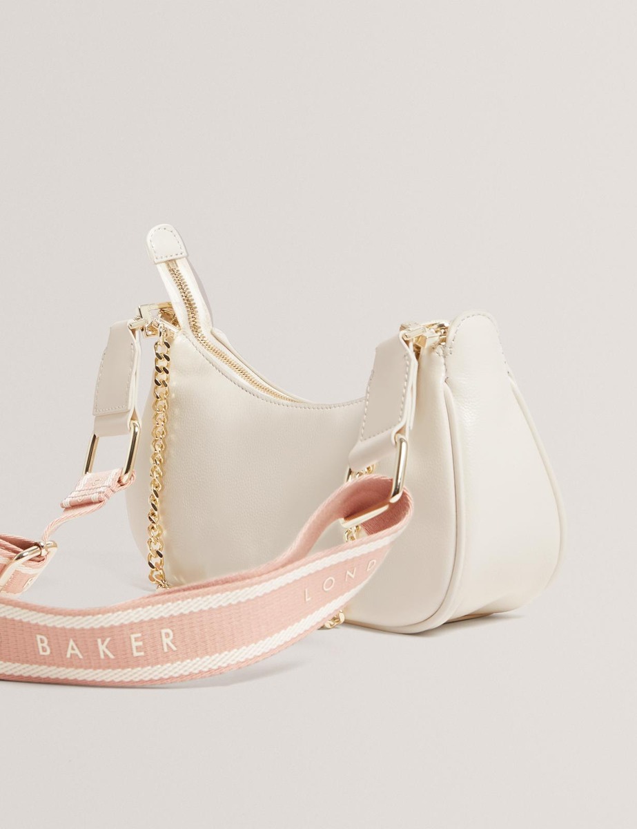 Irrotettava ketjuolkahihna ja leveä logollinen canvas hihna. Suljetaan vetoketjulla.