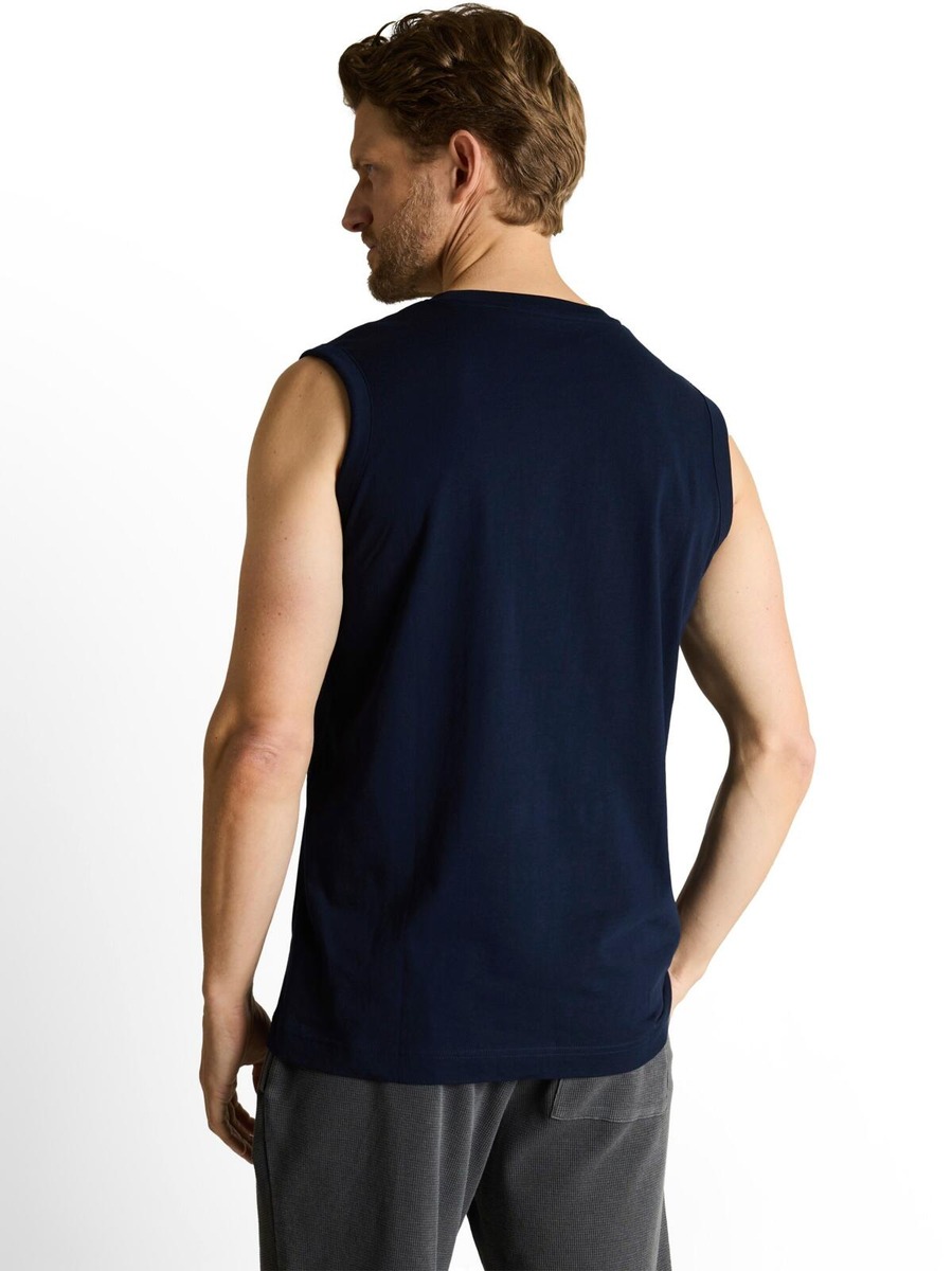 Miesten hihaton t-paita puuvillaa. O-aukko, pieni painatus rinnassa.