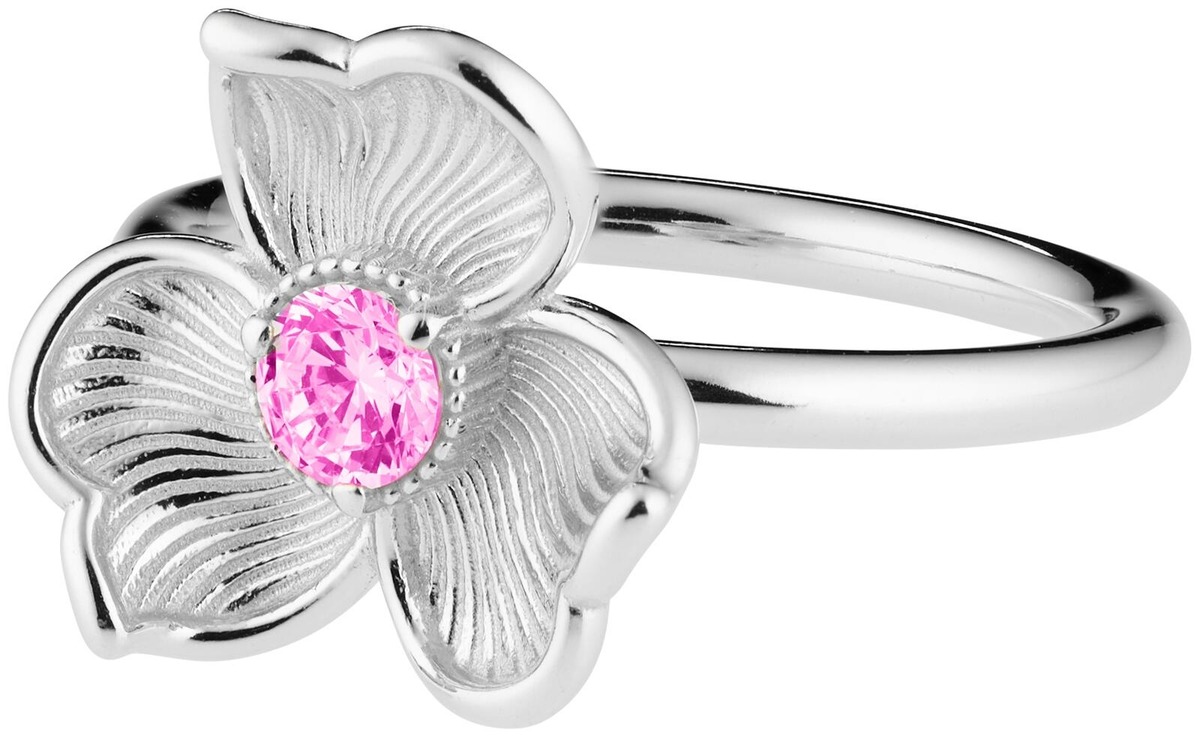 Anna-sormus on tyylikäs ja Jugendin pehmeiden kaarien inspiroima koru, jossa yhdistyvät yksinkertainen muotoilu ja kauniit yksityiskohdat. Sormuksen hopeinen kukkaosa on viimeistelty tarkasti kaiverretuilla terälehdillä ja sen keskellä loistaa kirkas vaalenapunainen Zirkonia. Tämä sormus sopii monenlaisiin tyyleihin ja tilanteisiin. Saatavilla myös sinisenä. Korun koko 15x13mm, runko 2mm, saatavilla eri koossa. Valmistettu Suomessa 100% kierrätetystä hopeasta, joka on rodinoitu. Tuote toimitetaan pakkauksessa, joka toimii myös lahjaksi annettaessa.