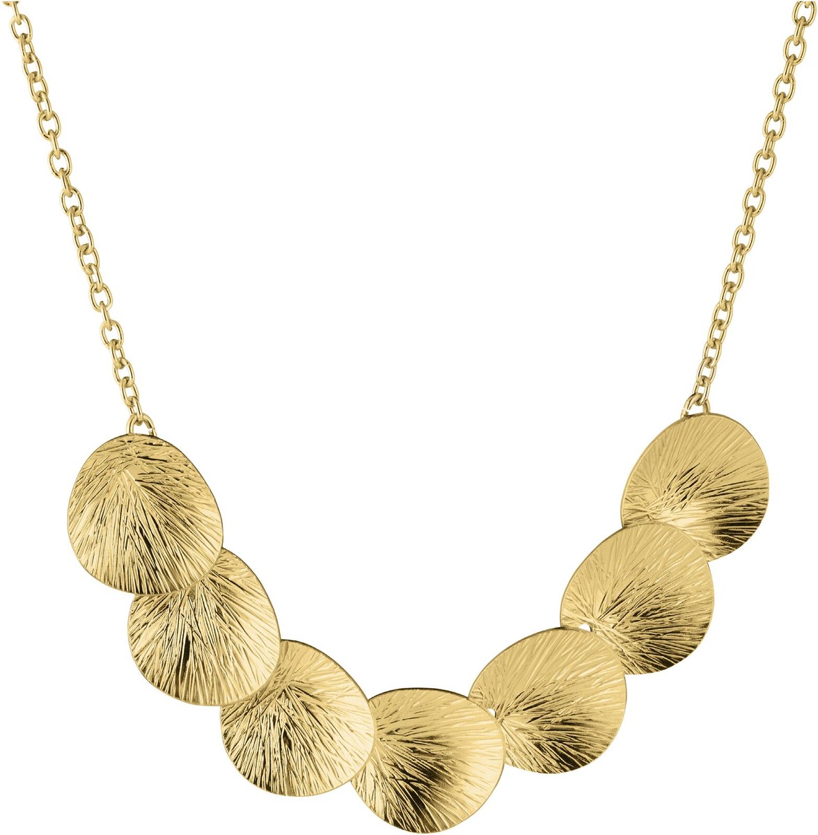 Lily-kaulakoru pyöreillä elementeillä. Tässä kaulakorussa yhdistyy keltakullan lämmin sävy sekä Lily-sarjan kaunis pintrastruktuuri, joka antaa elävän ilmeen. Korosta tyyliäsi modernilla designilla – täydellinen viimeistely asuun. Ketjun pituus säädettävissä 45/50cm. Valmistettu Suomessa 100% kierrätetystä hopeasta, joka on kullattu 14K kullalla. Tuote toimitetaan kauniissa pakkauksessa, joka toimii myös lahjaksi annettaessa.