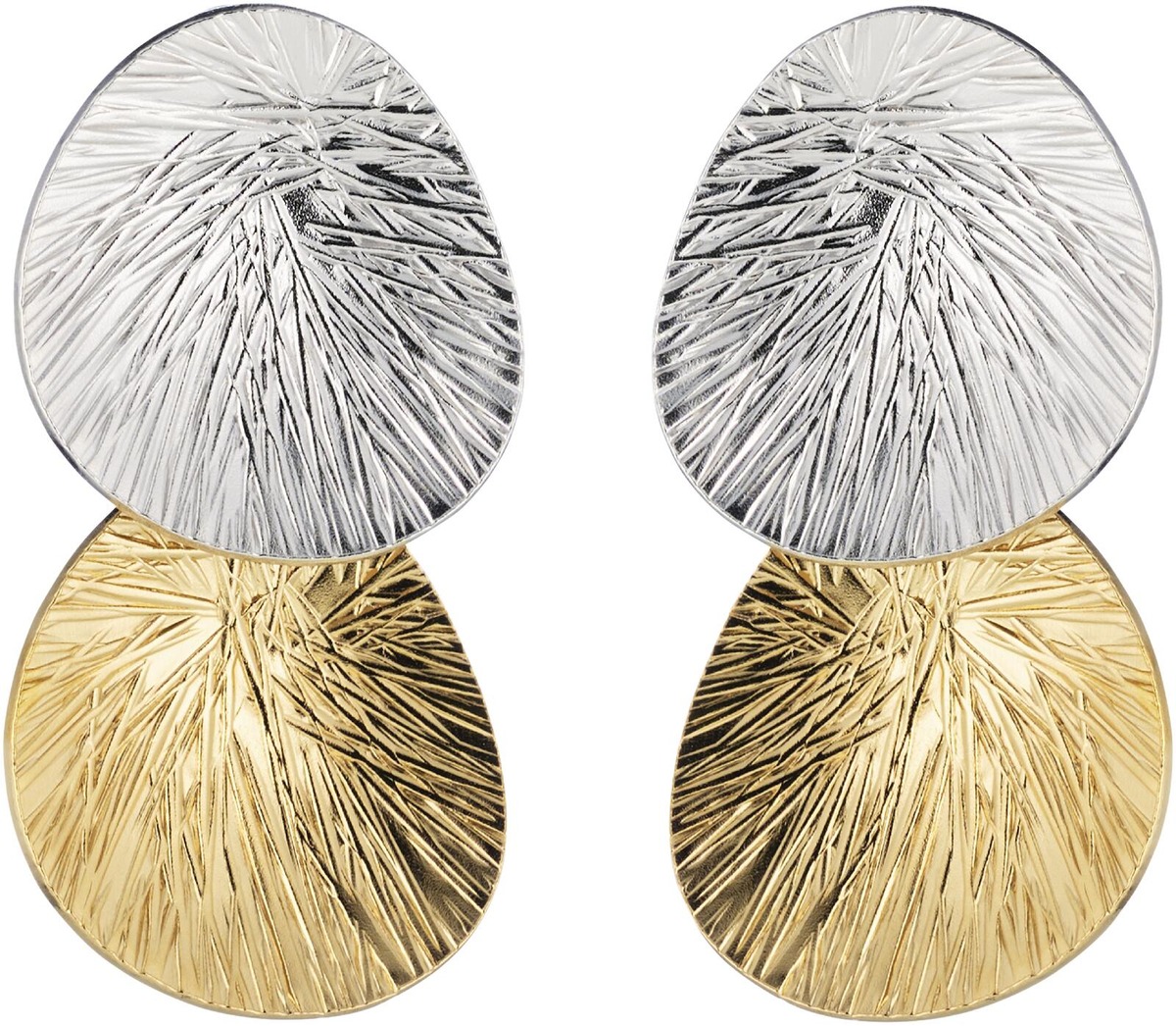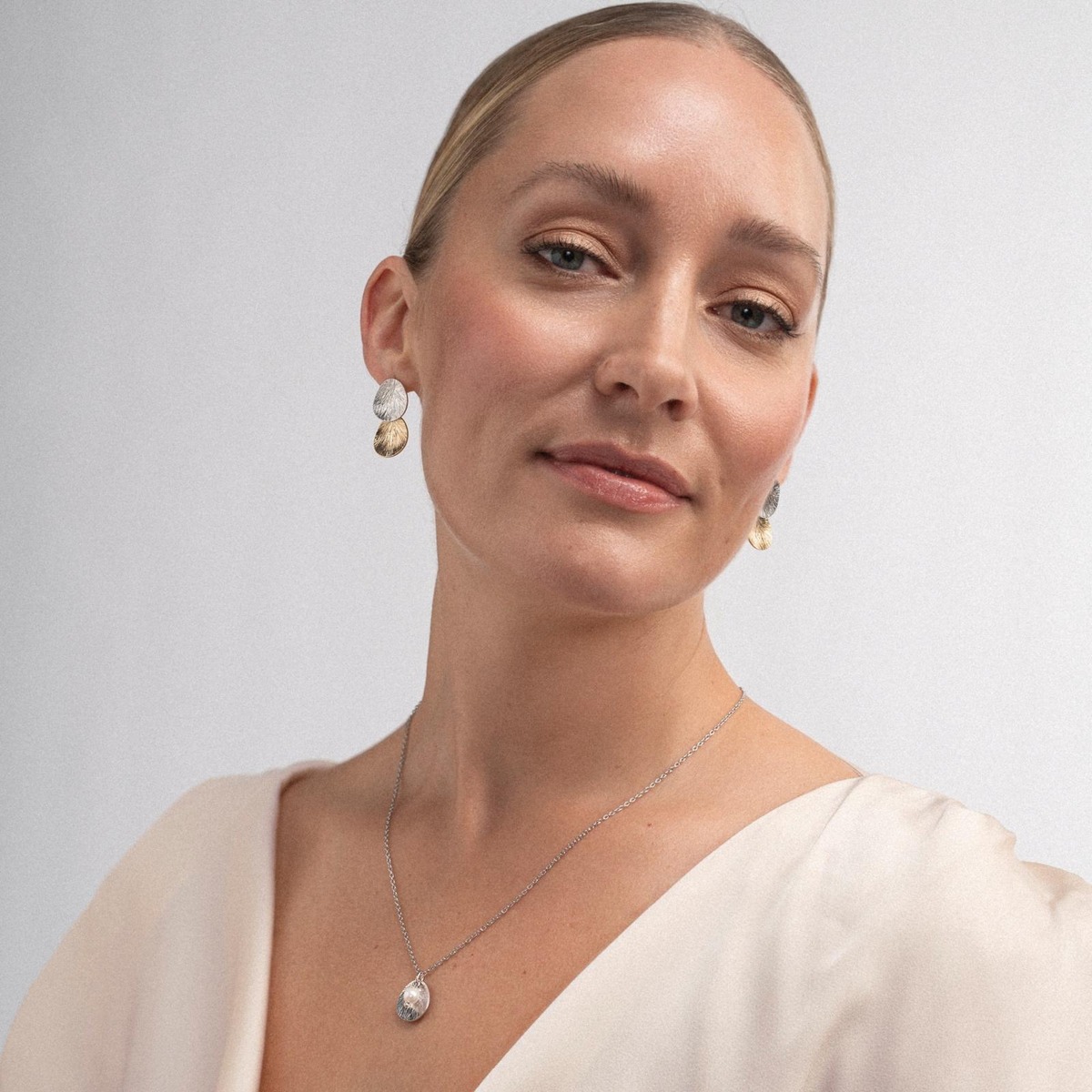 Lily-kaksipalaiset korvakorut on upea yhdistelmä hopean viileää hodetta ja keltakullan lämmintä sävyä, joista muodostuu harmoninen kokonaisuus. Lily-sarjan kaunis pintrastruktuuri antaa korulle elävän ilmeen. Täydellinen valinta juhlaan tai tuomaan ripauksen luksusta arkeen – rohkea, mutta ajaton. Valmistettu Suomessa 100% kierrätetystä hopeasta, joka on rodinoitu sekä keltakullatut osat kullattu 14K kullalla. Tuote toimitetaan kauniissa pakkauksessa, joka toimii myös lahjaksi annettaessa.