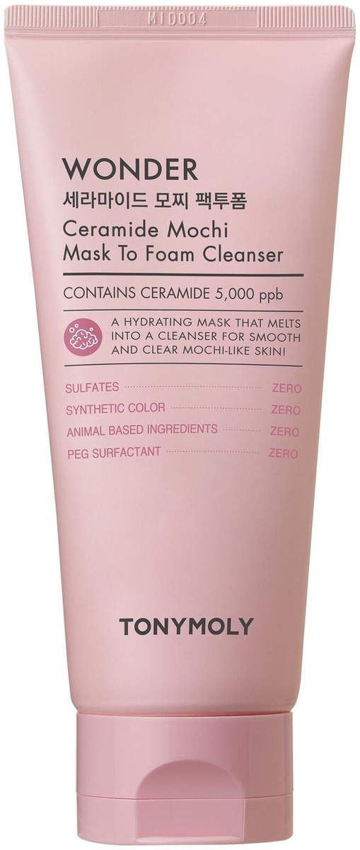 TONYMOLY WONDER Mochi Mask To Foam Cleanser on 2-in-1 kasvonaamio ja puhdistusaine, jonka pehmeän kimmoisa, mochimainen koostumus poistaa tehokkaasti niin ylimääräisen talin, epäpuhtaudet kuin kuolleet ihosolut. Iho jää puhtaaksi, sileäksi ja raikkaaksi ilman kuivaa tai kiristävää tunnetta.