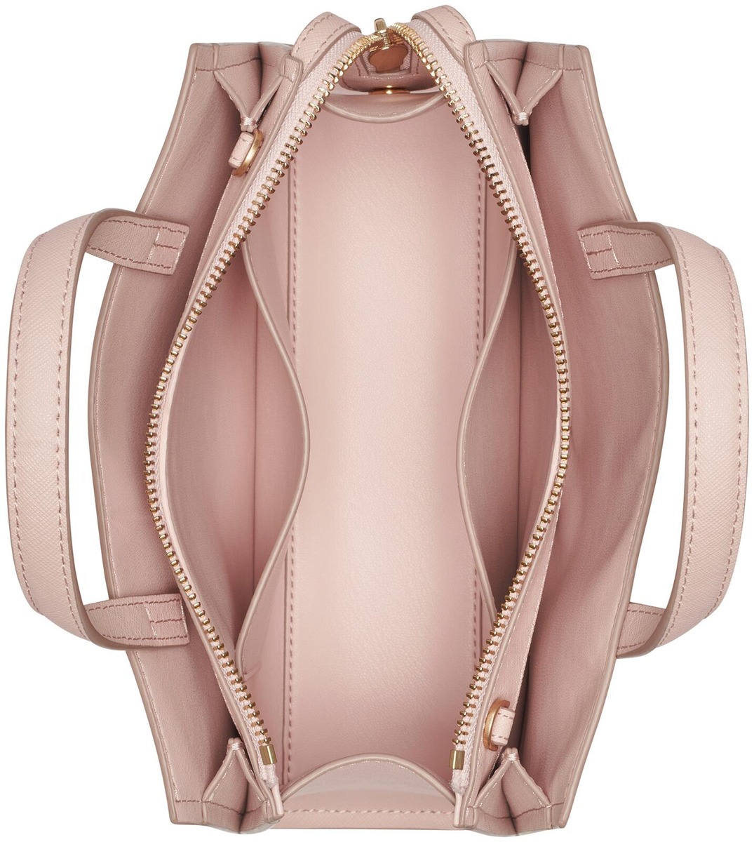 Keskellä vetoketjullinen lokero, jossa 2 avotaskua. Sivuilla avolokerot. Kahvat ja irrotettava säädettävä olkahihna.