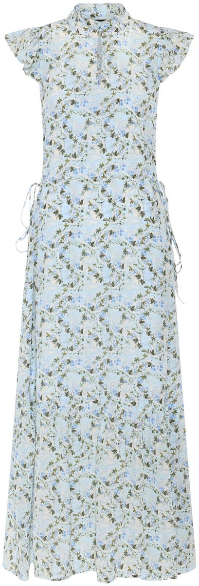 Bruuns Bazaar Solfia Ofiata on kaunis pitkä mekko, joka on valmistettu kevyestä ja ilmavasta kankaasta ja jossa on kukallinen printti. Mekossa on lyhyet hihat ja imarteleva siluetti, joka laskeutuu kauniisti vartalon myötäisesti. Säädettävät vyötärönauhat mahdollistavat istuvuuden mukauttamisen ja naisellisen vartalon korostamisen. Yhdistä matalilla sandaaleilla päiväkäyttöön tai korkokenkillä juhlavampiin tilaisuuksiin.