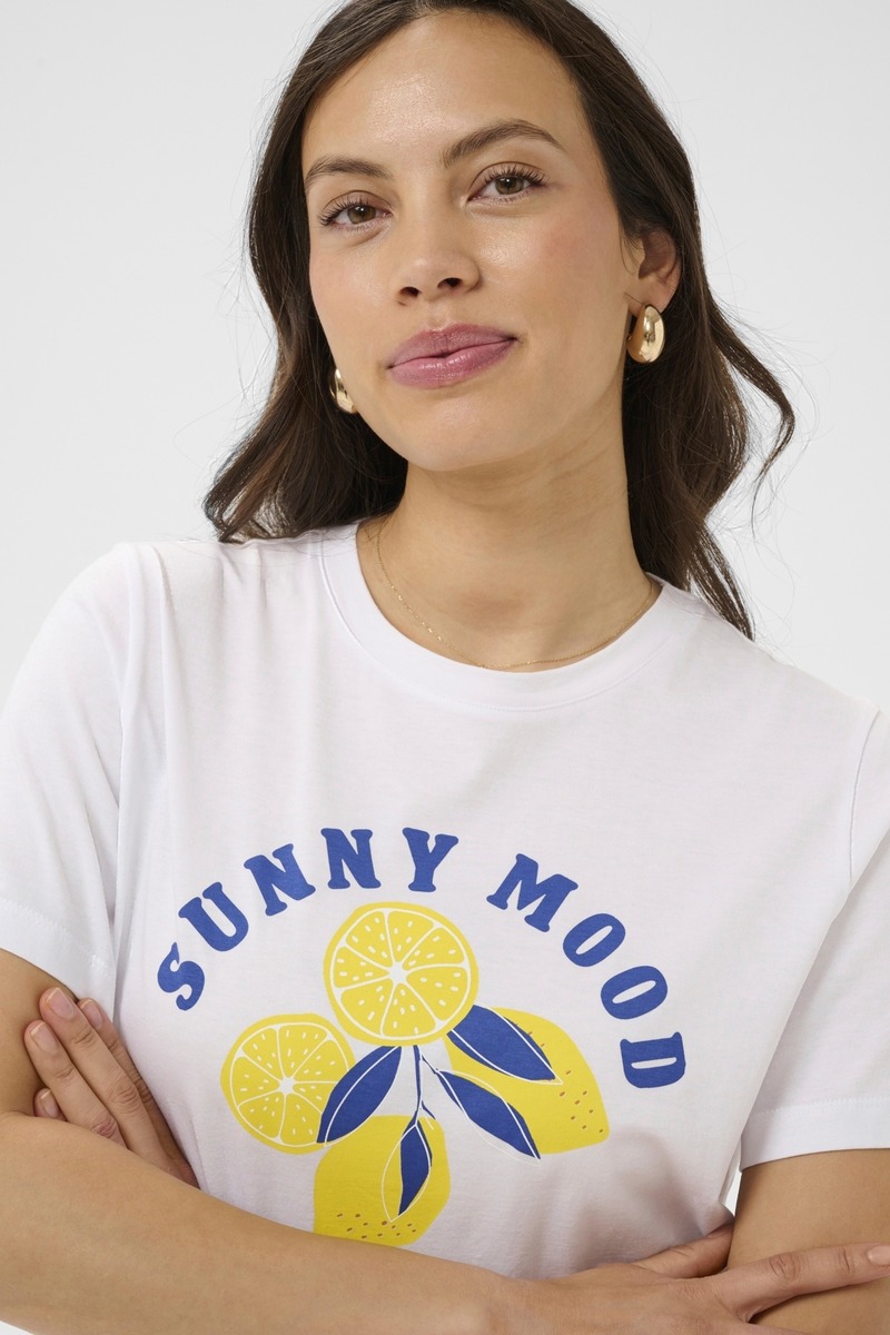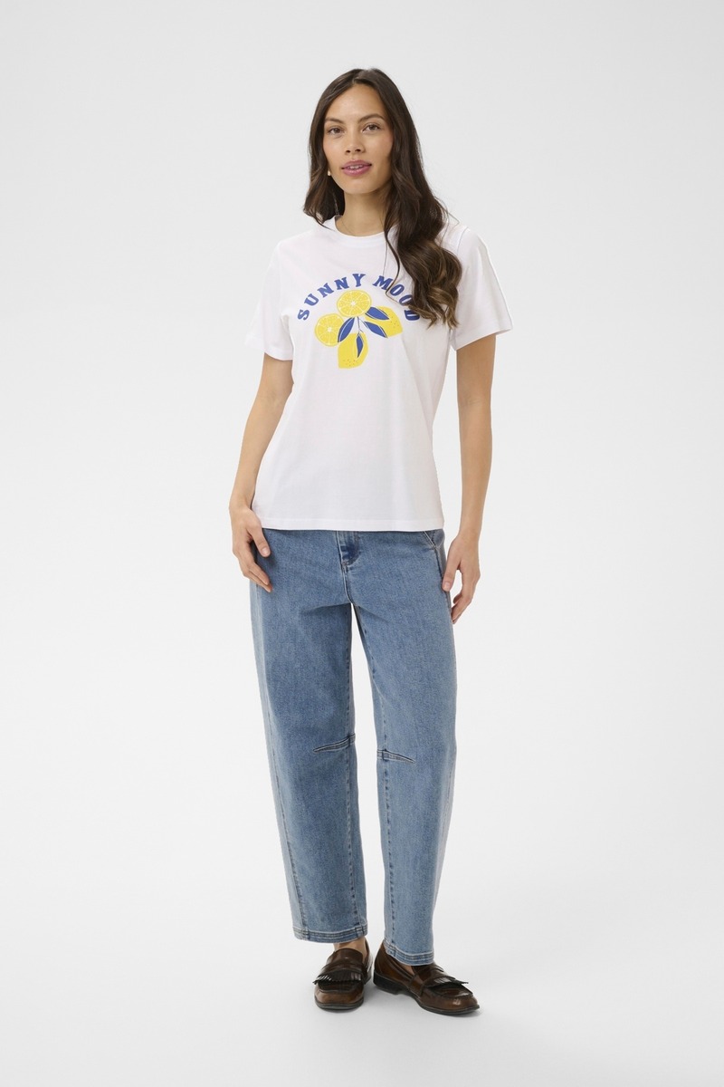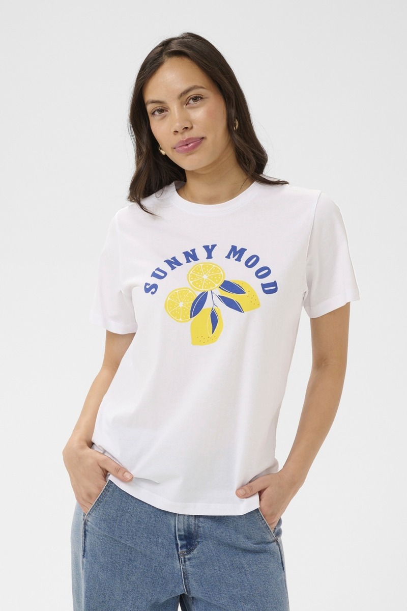 T-paidassa on värikäs teksti leikkisän ilmeen luomiseksi. T-paidan rento istuvuus ja kevyt kangas tekevät siitä hauskan ja mukavan lisän arkisiin asuihin.