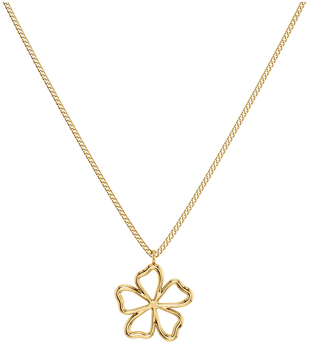 Kaulaketjun pituus on säädettävissä 42-45 cm. Kukkakoristeen koko 11 x 11 mm.