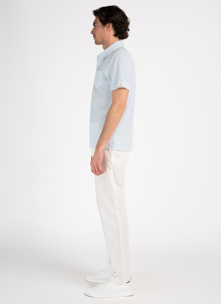 Miesten lyhythihainen t-paita kauluksella. Rintatasku sekä normaali mitoitus. T-paita kuuluu Pelle P:n juhlavuosimallistoon joka on kunnianosoitus Pelle Pettersonille ja hänen ajattomalle muotoilufilosofialleen, jossa rento tyyli kohtaa laadun.