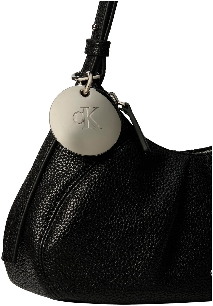 Sisällä korttitasku, suljetaan vetoketjulla. Hieman säädettävä kahva. Hopeinen CK charm.