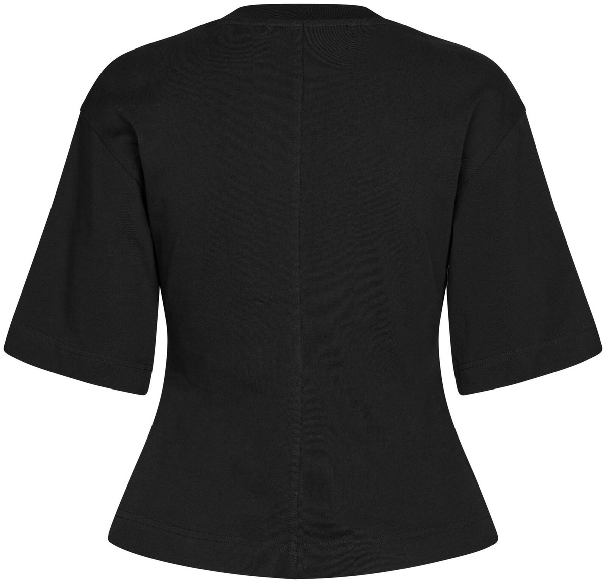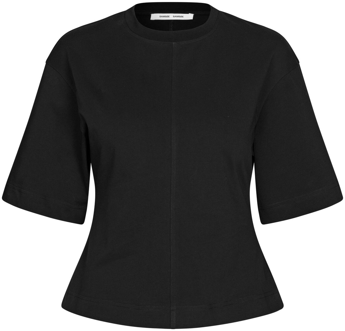 Samsøe Samsøe moderni Sadisas t-paita. Pehmeästä 100 % puuvillasta valmistettu pusero, jossa minimalistinen design yhdistyy moderniin mukavuuteen. Selkeä vyötärön leikkaus tuo asuun ryhdikkyyttä ja imartelee siluettia, kun taas väljät hihat ja laadukas materiaali tekevät tästä täydellisen luottovaatteen arjen tyylikkäisiin kokonaisuuksiin.