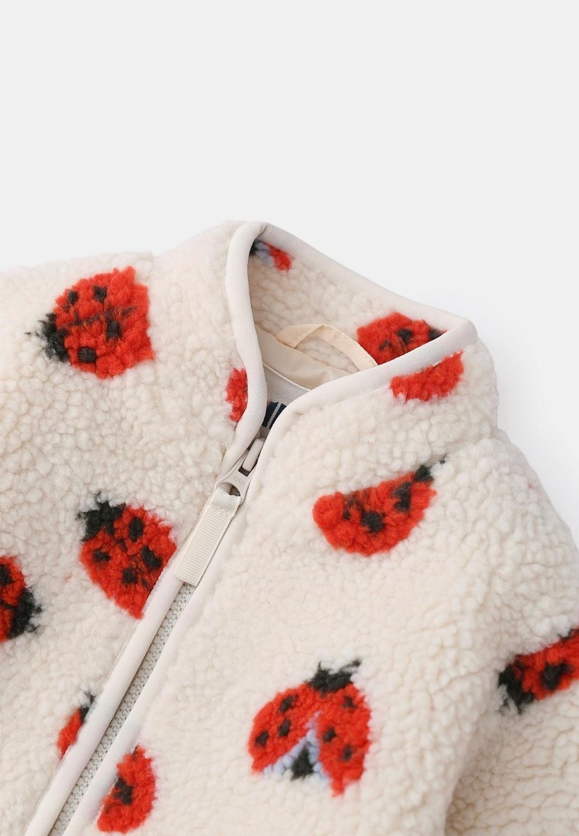 Miellyttävä fleecetakki vauvoille, joka on pehmeä ja pörröinen. Tämä malli on koristeltu koko vaatteessa olevalla kuviolla, mikä tekee siitä hauskan ja erottuvan. Takissa on edessä käytännöllinen, väriä vastaava vetoketju, ja sen reunoja sekä hihansuita koristavat saman väriset kanttaukset. Mukavuutta lisää pehmeä vuori ja käytännöllinen ripustuslenkki niskassa, jonka ansiosta takin säilyttäminen on vaivatonta. Tämä fleecetakki on täydellinen valinta lapsesi päivittäisiin seikkailuihin.