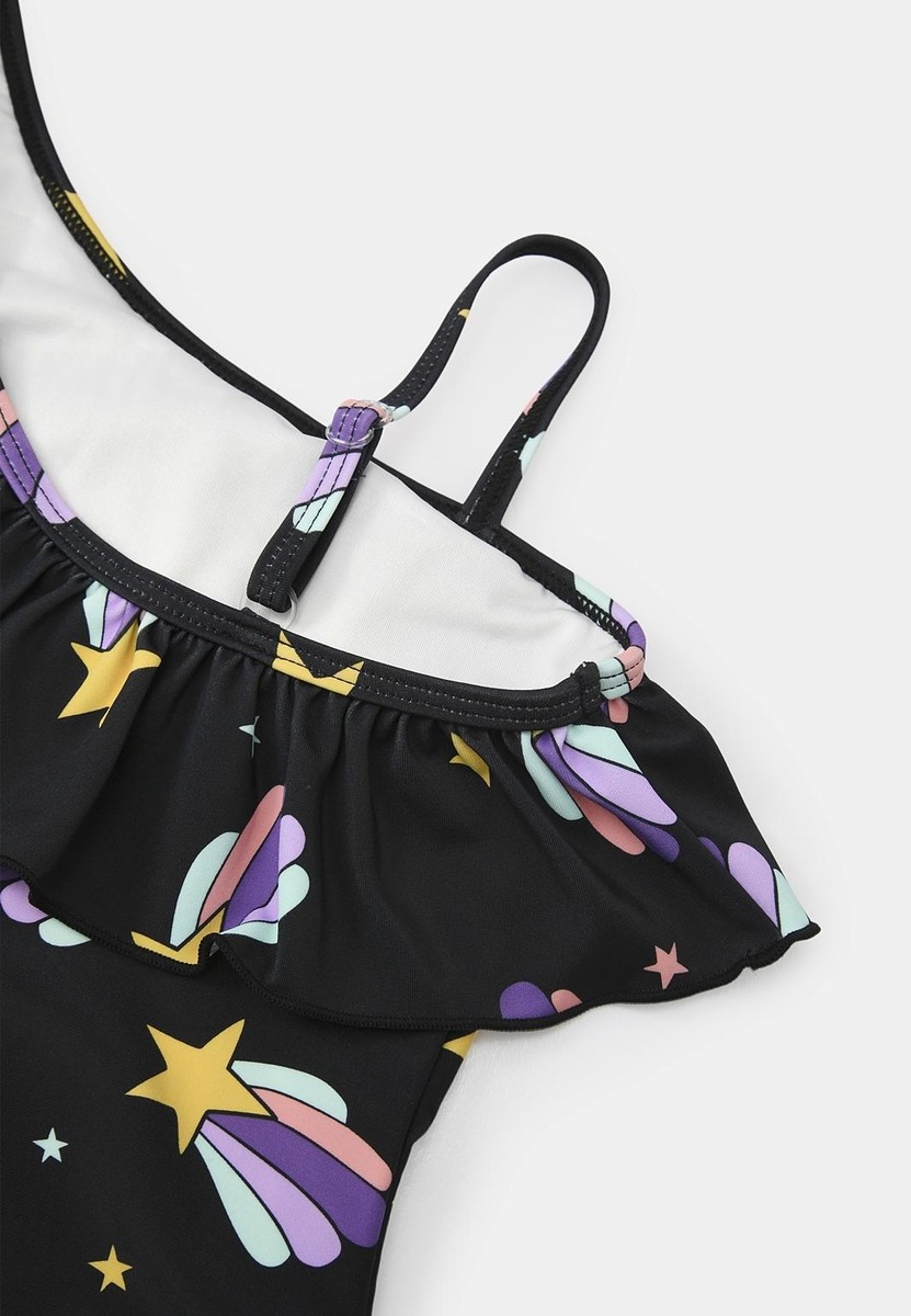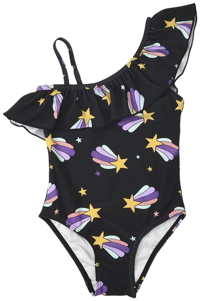 Värikäs uimapuku, jossa on koristeellinen olkain. WAVE-uimapuku on varustettu pehmeällä vuorella ja vahvistetulla haaralla, mikä takaa mukavuuden ja kestävyyden. Tämä nopeasti kuivuva polyesteri tekee siitä täydellisen valinnan niin uima-altaalle kuin rantaelämään.