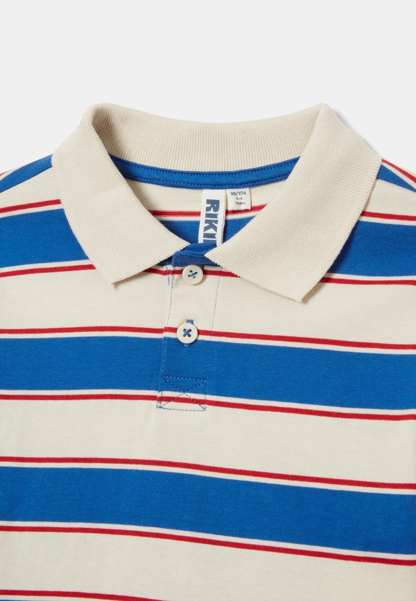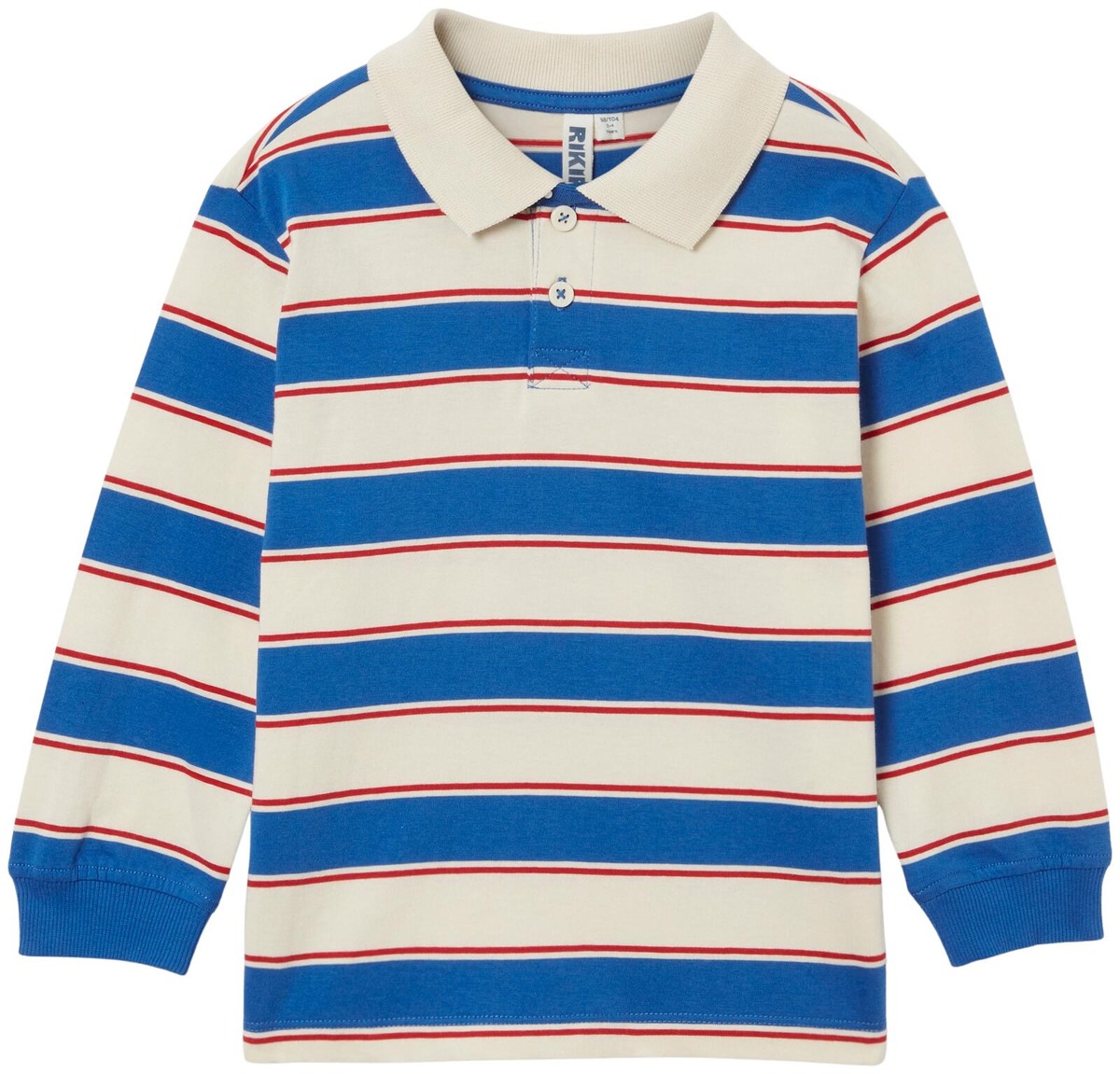 Rikiki paita Robin on tyylikäs ja sporttinen pitkähihainen paita, joka on valmistettu 100 % puuvillasta. Jalkapallopaitojen tyyliä mukailevassa mallissa on kaulus, jossa on kaksi nappia, sekä suora istuvuus, joka takaa mukavuuden. Kolmiväriset raidat lisäävät ilmeeseen dynaamisuutta, ja suora leikkaus helmassa yhdessä ribbiresoreilla varustettujen hihansuiden kanssa tekevät tästä paidasta erinomaisen valinnan niin vapaa-aikaan kuin urheiluun.