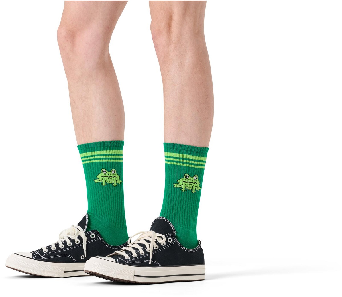 Nosta sneaker-tyylisi uudelle tasolle Happy Socks Frog -sukilla! Vihreät sukat tuovat väriä ja asennetta arkeen, ja nämä sopivat täydellisesti niin kadulle kuin treeniinkin.