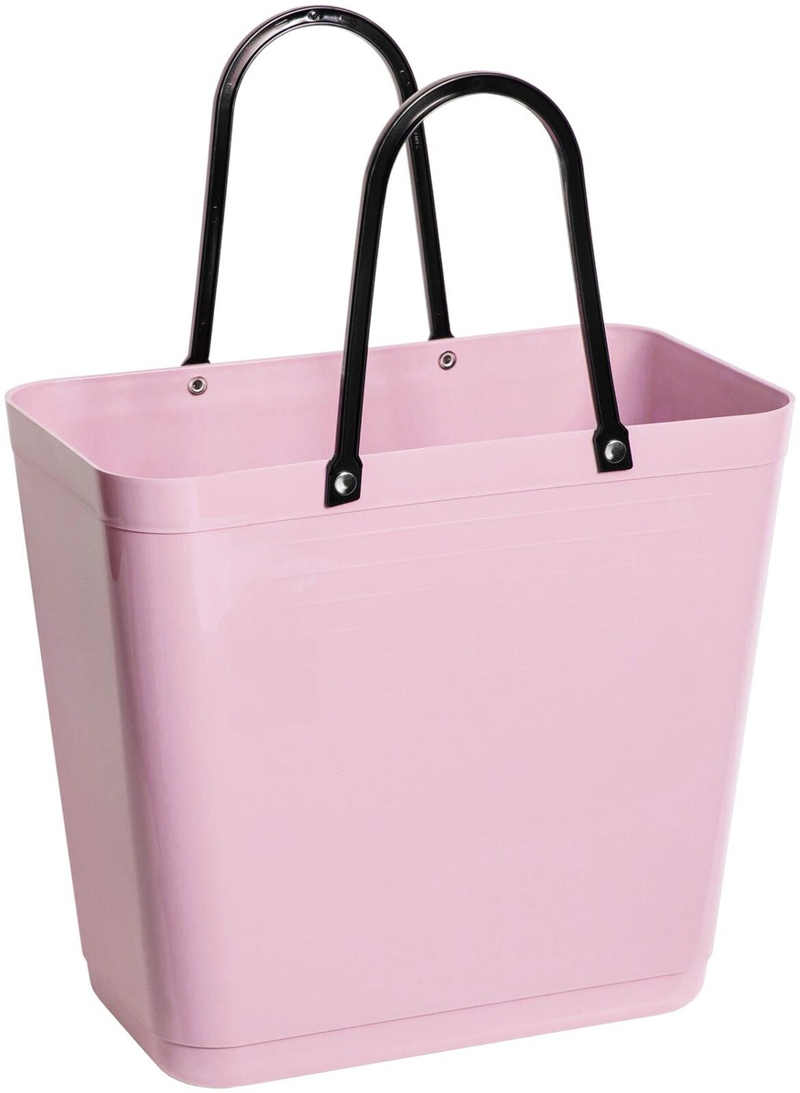 Korkea Hinza-laukku valmistetaan 100 %:sta kierrätysmuovista. Muovilaaduksi on valittu PP-muovi, sillä se on koostumukseltaan tukevaa ja jämäkkää. Näin tämä korkean mallinen laukku pitää ryhdikkäästi muotonsa myös mm. säilytys- tai kierrätysastioina käytettäessä. Laukun kahvat on valmistettu 100 %:sti sokeriruo'osta valmistetusta biomuovista, ja ruostumattomat niitit ovat nikkelöityä messinkiä. Laukun voi puhdistaa kostealla liinalla ja miedolla pesuaineella. Kestävyys, maksimipaino 14 kg, tilavuus 14 litraa.