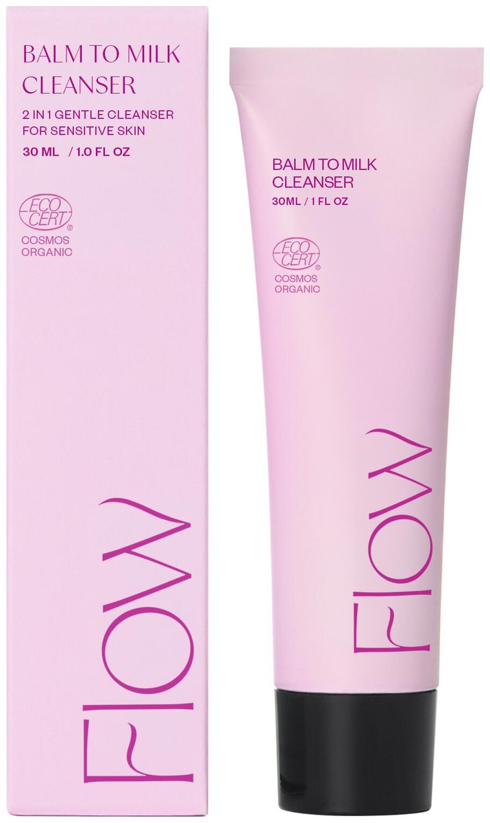 Balm to Milk Cleanser on yksi Flow Cosmetics tuotteiden klassikoista: arktista villimustikkaa sisältävä hellävarainen puhdistusbalmi kasvoille. Hoitava koostumus jättää ihon pehmeän tuntuiseksi - sano hyvästit kuivalle ja kiristelevälle tunteelle kasvojen puhdistuksen jälkeen! Poistaa meikin tehokkaasti, mutta hellävaraisesti. Poistaa myös fysikaalisen aurinkosuojan huolellisesti. Kaksoispuhdistus yhdessä tuotteessa. Käyttö: Hiero ensin kuiville kasvoille saadaksesi meikin ja liat liukenemaan. Emulgoi veden kanssa maitomaiseksi, pyörittele vielä kasvoilla ja lopuksi huuhtele. Tuote jättää ihon pehmeän ja hoidetun tuntuiseksi, huuhtelun jälkeen ei tule liian puhtaaksi pestyä kiristelevän kuivaa tunnetta. Sopii päivittäiseen käyttöön kaikille ihotyypeille, erityisesti kuivalle ja herkälle iholle. Flow Cosmetics on pieni perheyritys, joka valmistaa Ecocert COSMOS -sertifioitua huippulaadukasta suomalaista luonnonkosmetiikkaa laadukkaimmista raaka-aineista.